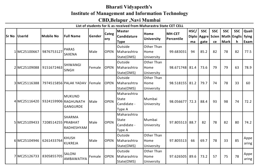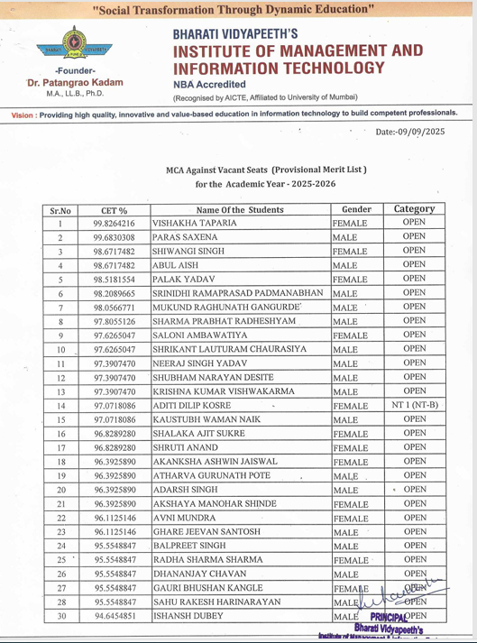 Website: www.bvimit.co.in , Email: principal.bvimit@bharatividyapeeth.edu
